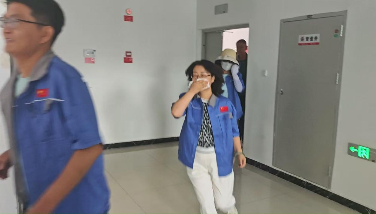 接到疏散指令后,各部門員工在疏散引導(dǎo)組的指引下,用濕毛巾捂住口鼻,低姿彎腰,按照預(yù)定的疏散路線快速、有序地撤離至指定的“人員疏散集結(jié)點(diǎn)”。